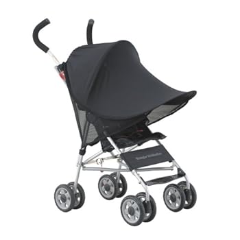 ストレッチ素材の大きな日よけで上からはもちろん、横や前からの日差しもさえぎるたっぷりサイズ。